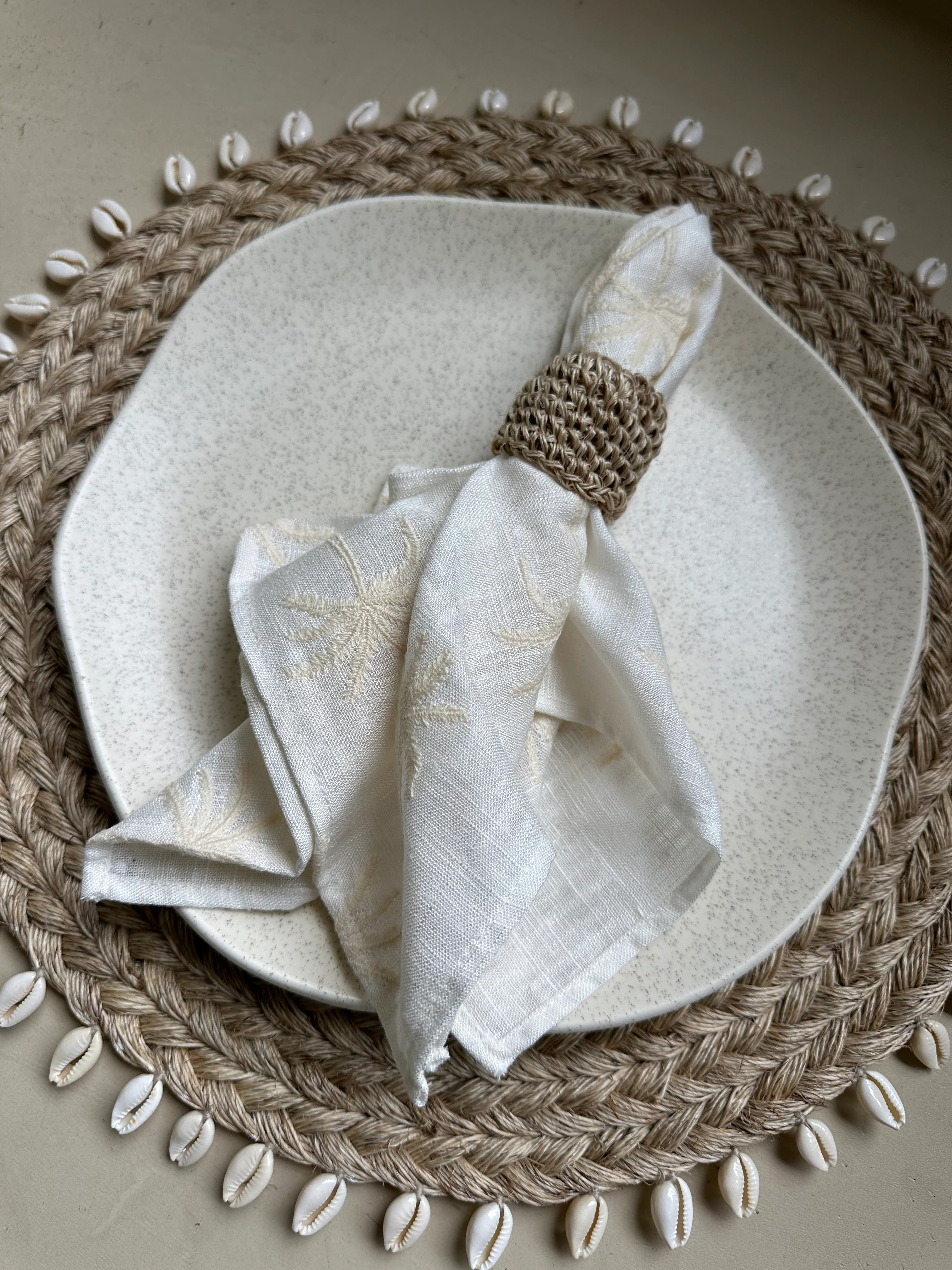 Servilletero tejido a mano en fibra natural, perfecto para añadir un toque decorativo y con estilo a tu mesa.